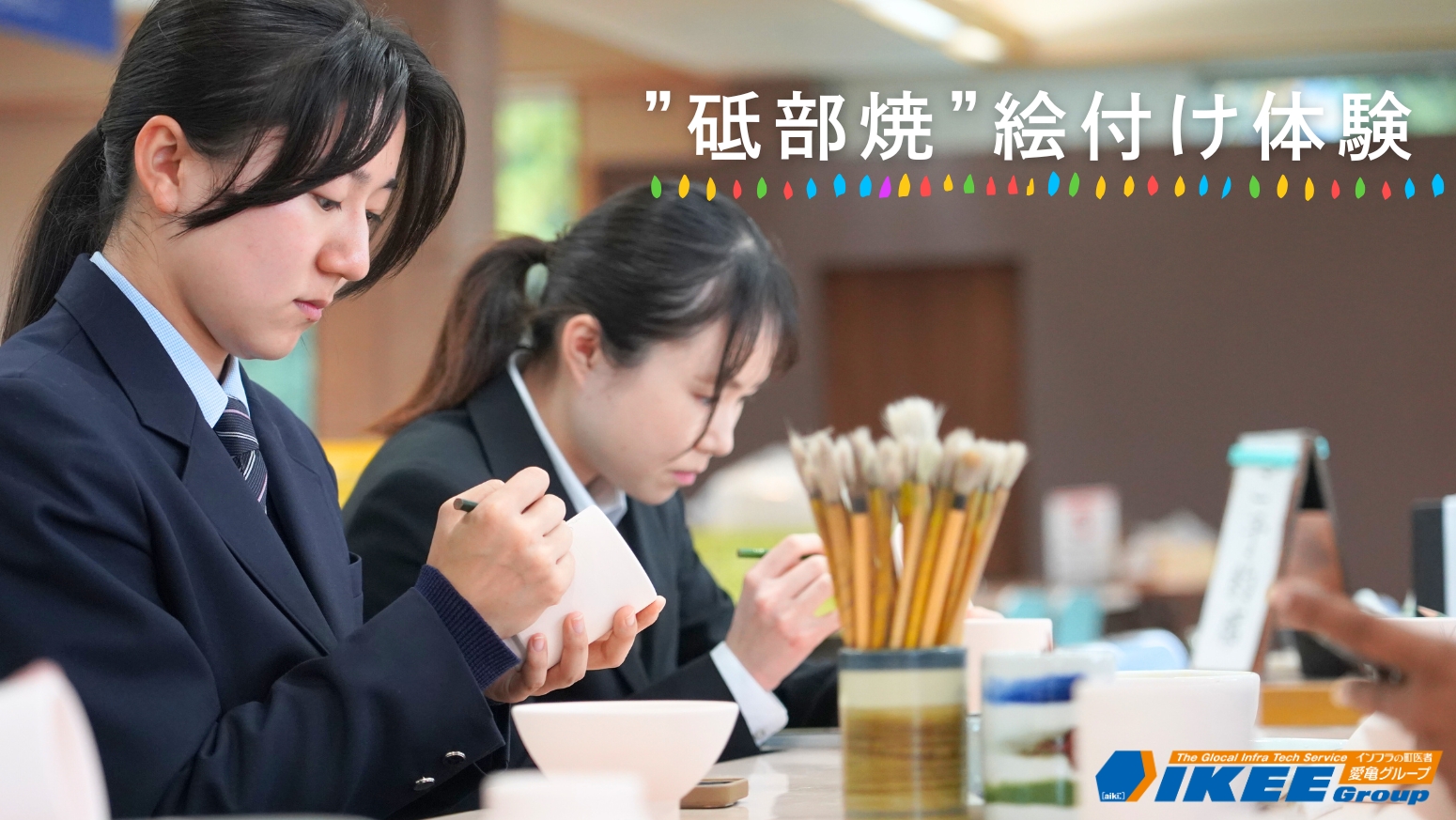 砥部焼絵付け体験を行い、世界に一つだけのオリジナル茶碗と湯飲みを作りました。