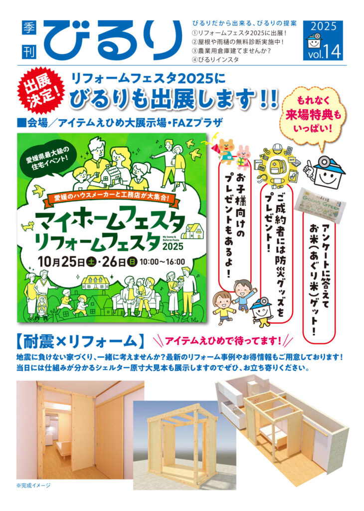 2025年10月25日(土)・26日(日)にアイテムえひめにて開催される「リフォームフェスタ」に出展いたします。